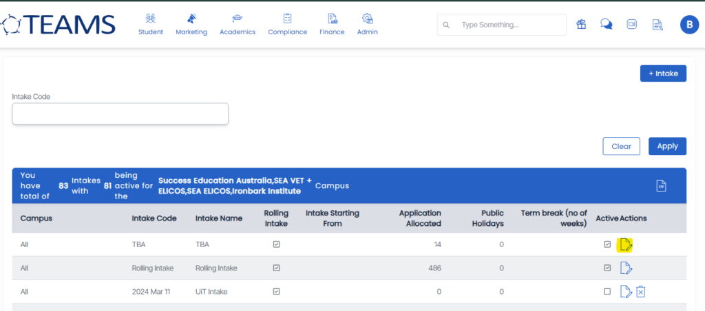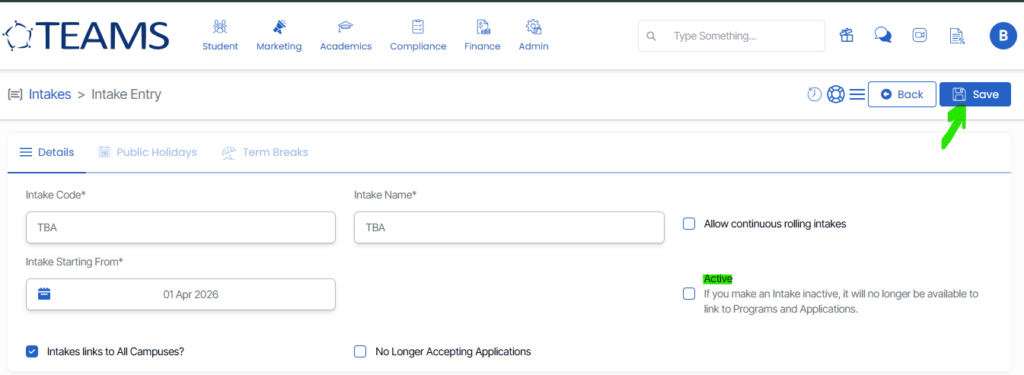 - You can reactivate the intake at any time by following the same steps and ticking the Active checkbox again.